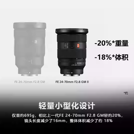 索尼 70mmF2.8 II二代全幅变焦镜头SEL2470GM2现货 Sony