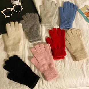 可爱尤物 触屏加绒针织毛线骑车洞洞手套 ooahz定制松石绿~冬季