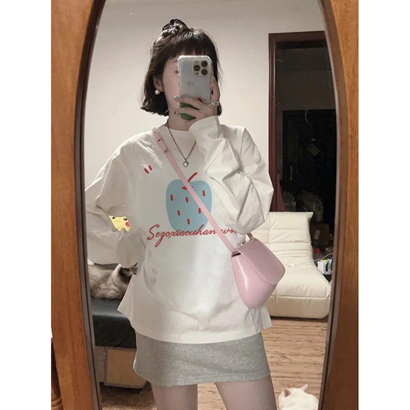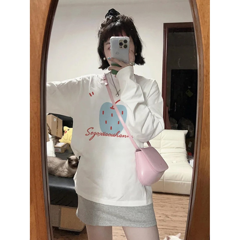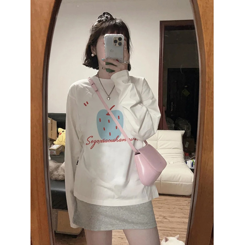 女装 加绒纯棉白色内搭打底衫 t恤女宽松上衣大码 长袖 潮 女2026新款