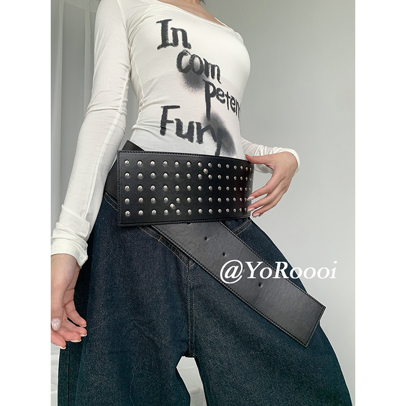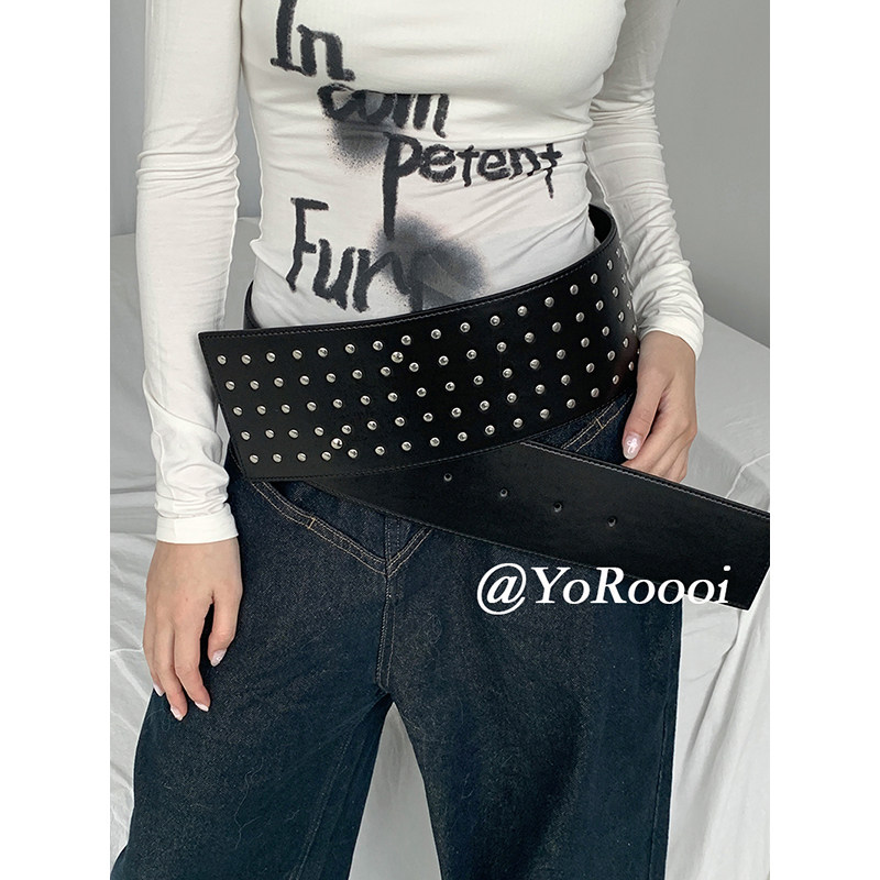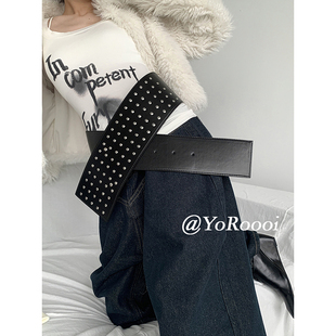饰腰封 腰带百搭装 YoRoooi 小众欧美夸张重工铆钉朋克手工超宽个性