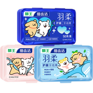 50支3盒 狮王细齿洁羽柔护龈牙线棒双线含氟联名款 线条小狗