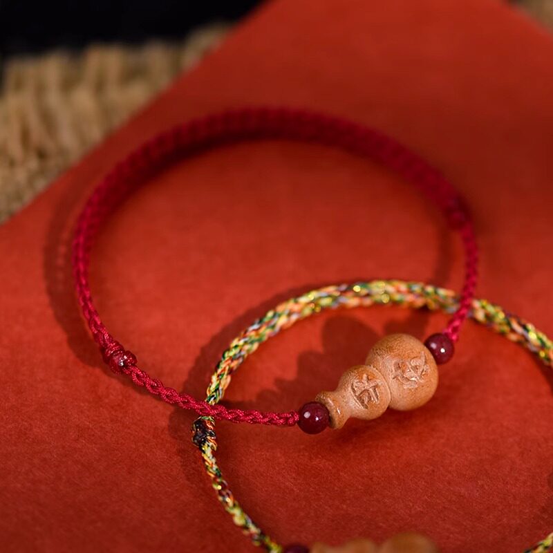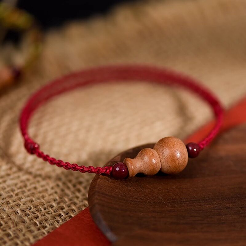 普陀山天然老桃木葫芦平安手链红绳朱砂脚链儿童婴儿宝宝编织手绳