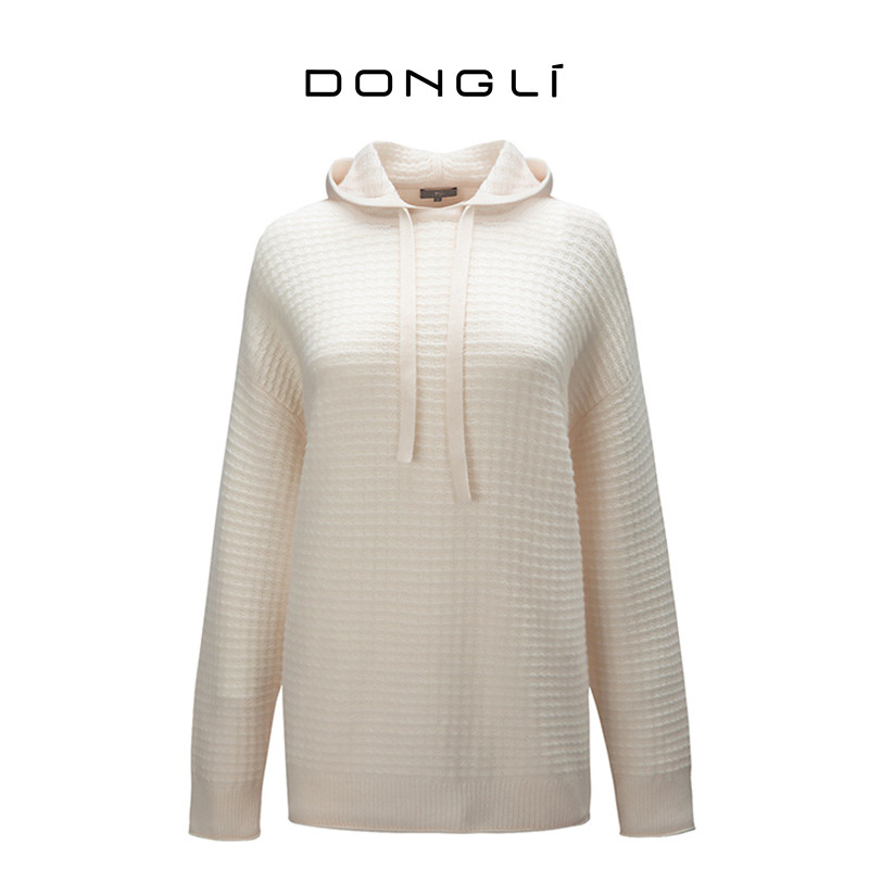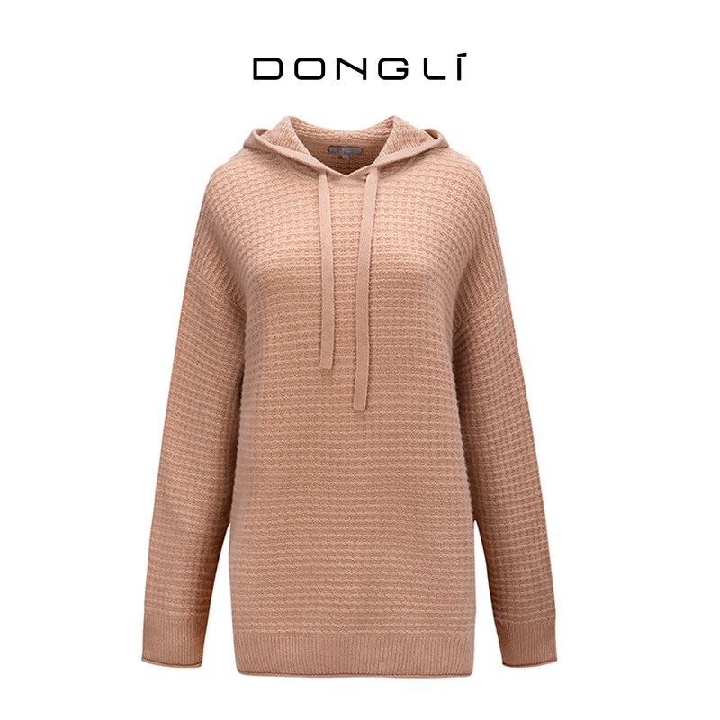 落肩套衫 东黎溯源款 羊绒连帽衫 秋冬女士华夫格长袖 山羊绒