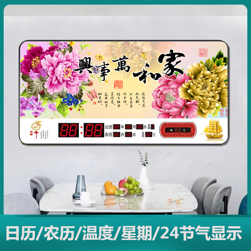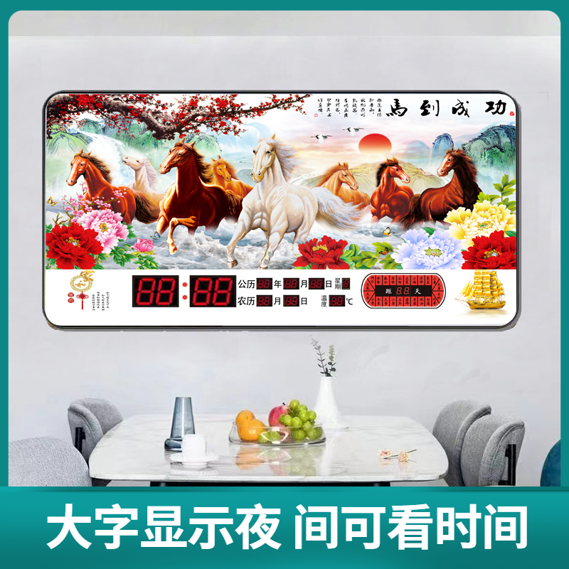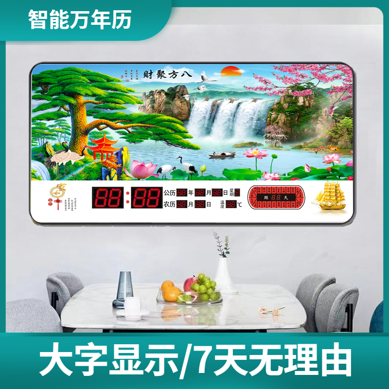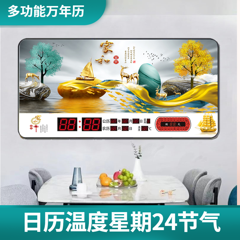 新款 饰画墙挂钟 客厅万年历餐厅表墙上现代静音大字插电日历家用装