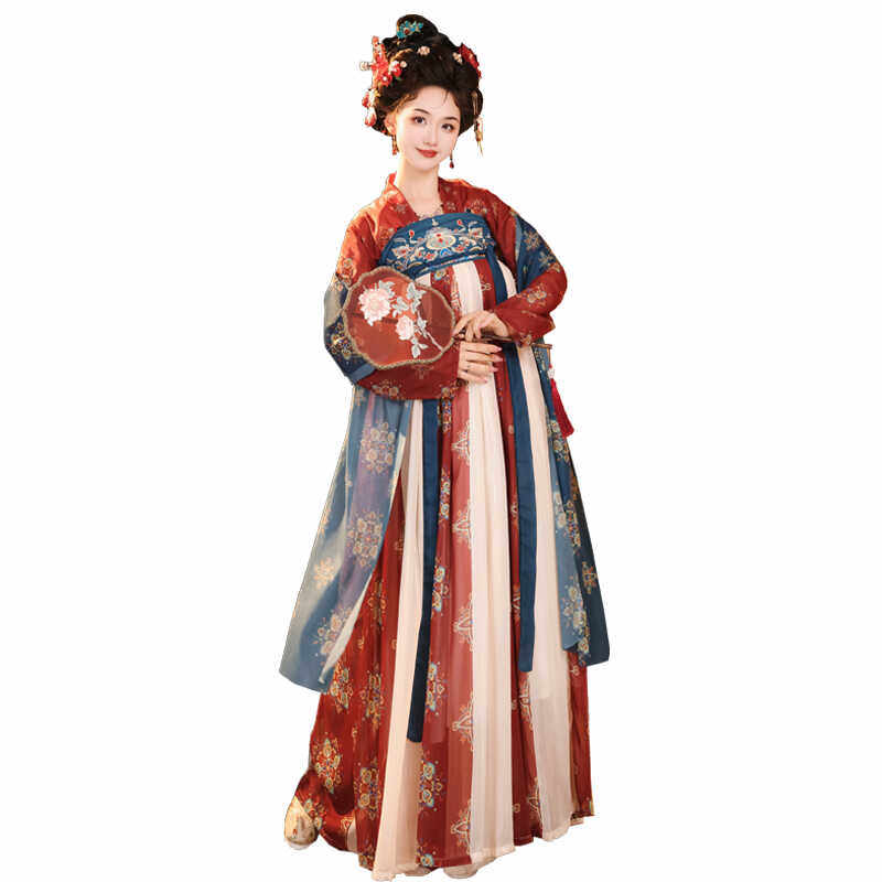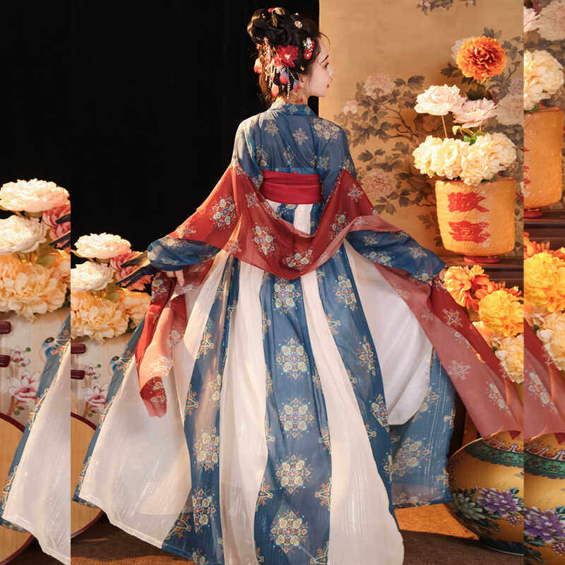 春夏款 日常仙气唐制汉服女复原中国风齐胸襦裙一片式 盛世大唐