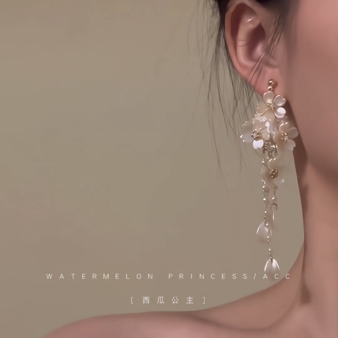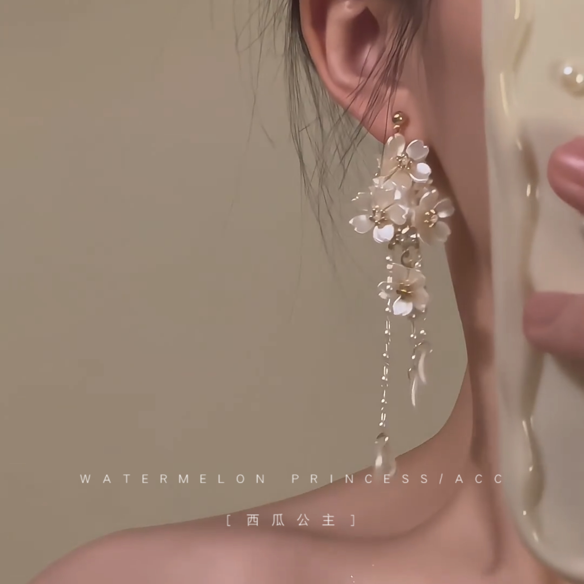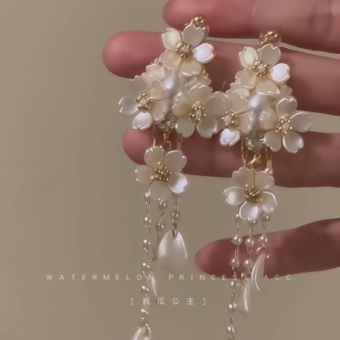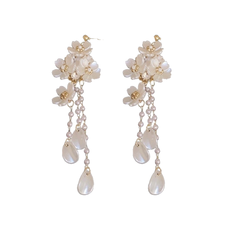 流苏耳钉 超仙耳饰女法式 「月白樱落」白色花朵耳环2026新款 爆款