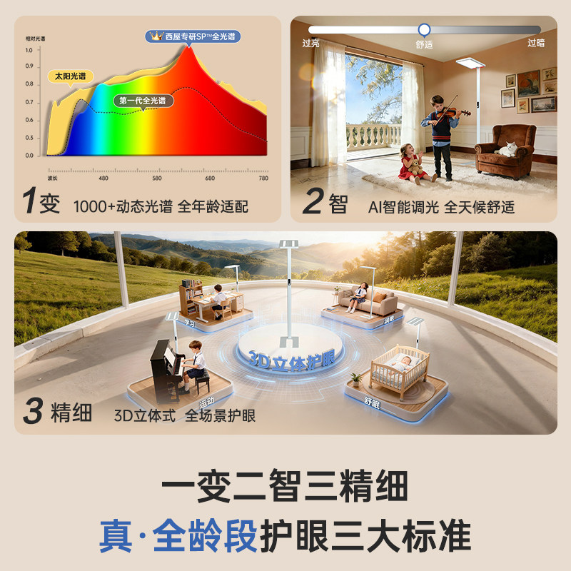 西屋大路灯护眼灯儿童学习台灯全光谱阅读学习专用钢琴落地灯S5S6