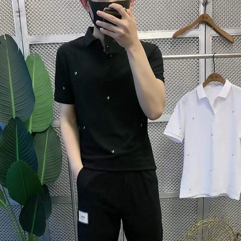 休闲潮流带领纯棉T恤男士 网红ins超火夏季 别致翻领polo衫 韩版 修身