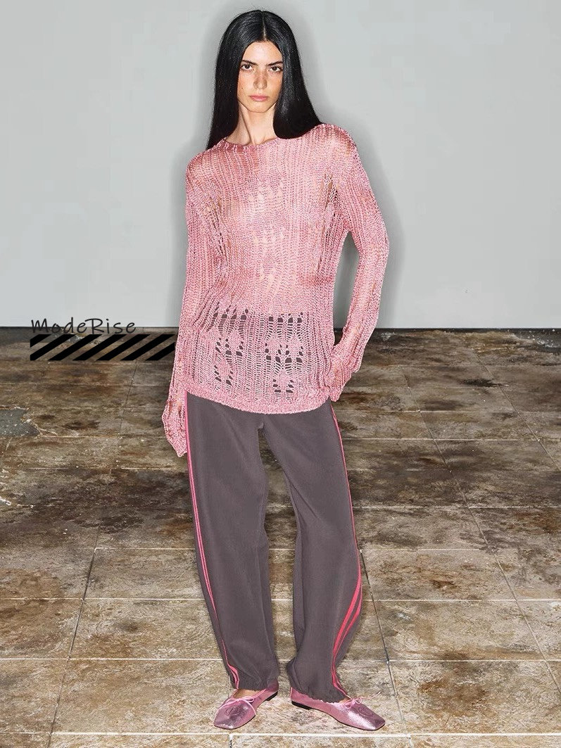 春季 新品 休闲镂空针织衫 正品 防晒衫 简约打底长袖 上衣 现货open