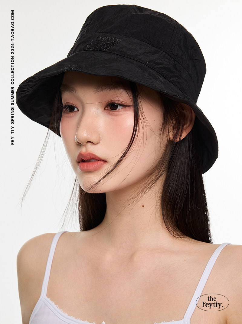 倪妮同款 黑色帽子日本大头围渔夫帽女系带百搭盆帽羊毛帽遮阳防晒
