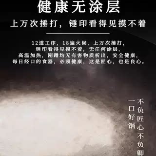 正品 章丘铁锅官方旗舰店手工锻打生不粘锅无涂层已开锅家用炒菜锅
