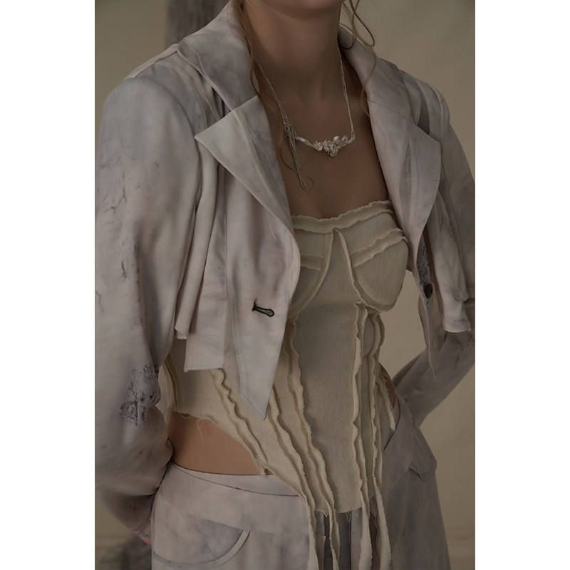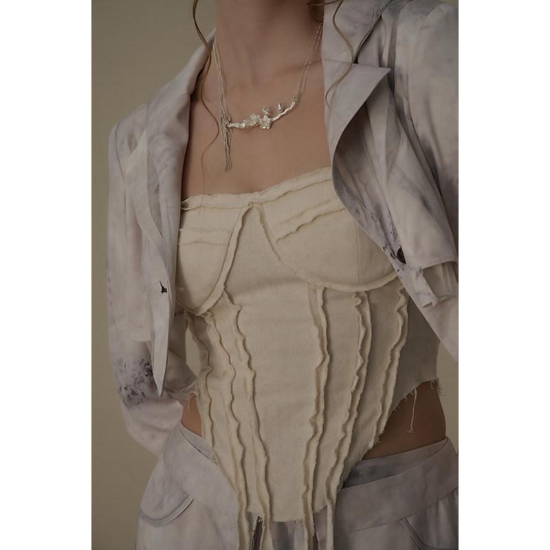 Elywood米白解构绳结吊带背心修身 内搭外穿 显瘦设计上衣辣妹短款