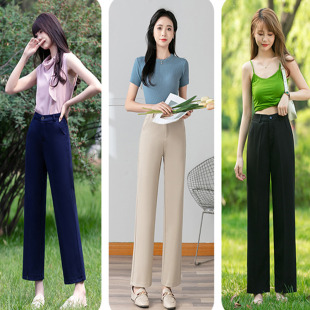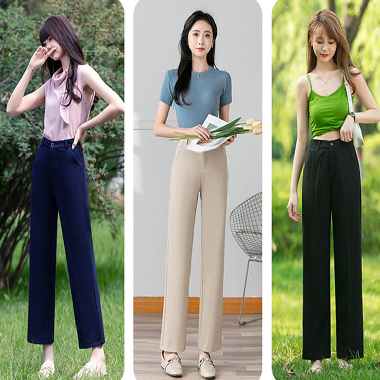 藏青蓝窄版 阔腿长裤 直筒裤 裤 子 女春秋150小个子高级感西装 九分裤