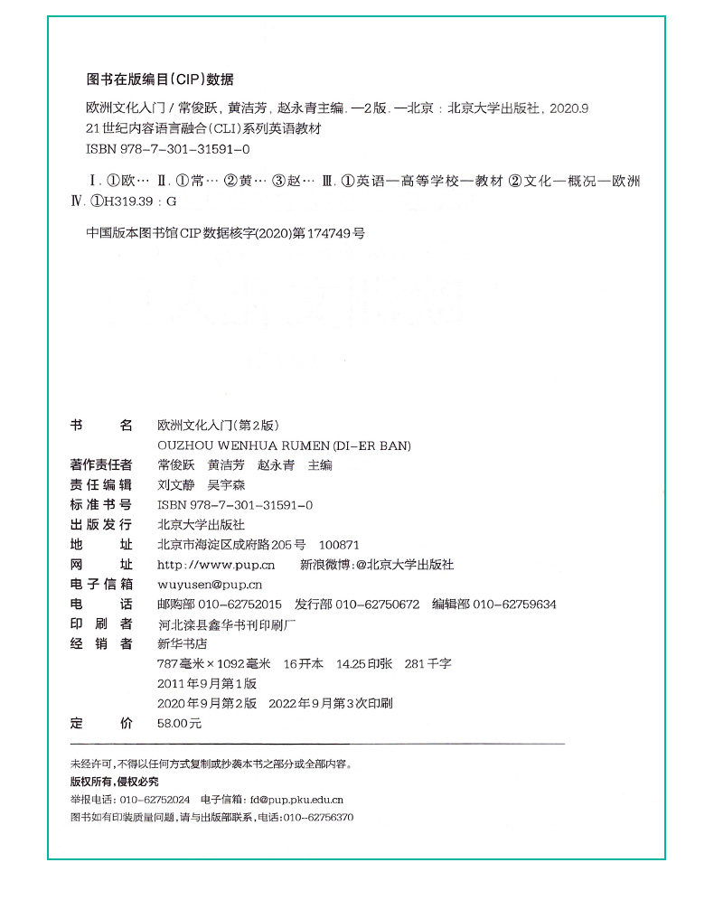 社9787301315910 北京大学出版 备考2026山东福建广东江苏自考教材08680欧洲文化入门第2版 常俊跃2020版