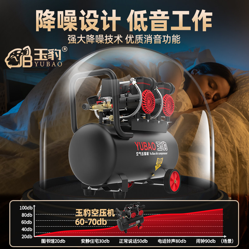 无油空压机工业级空气压缩机大型喷漆高压220V小型冲气泵静音气泵