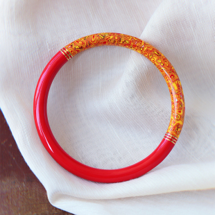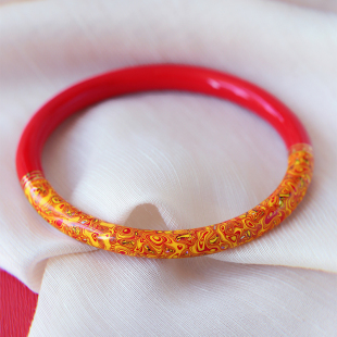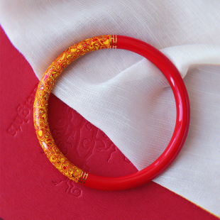原矿朱砂精品红砂非遗传承大漆珐琅彩手镯 朱砂国风镯子饰品 女款