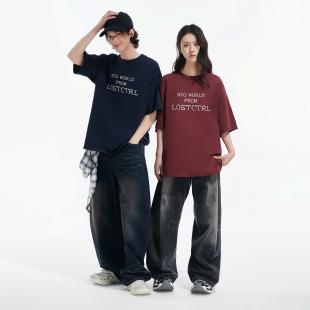 宽松国潮体恤 新款 LOSTCTRL原创潮牌十字绣英文字母短袖 T恤男夏季