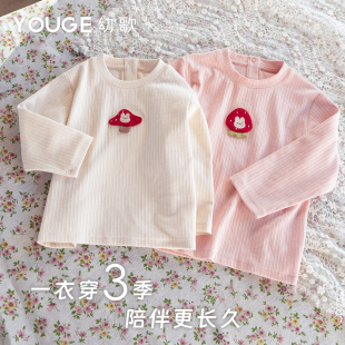 软T恤打底衫 YOUGE幼歌婴幼儿春新小兔纯色百搭卡通长袖 Q条棉