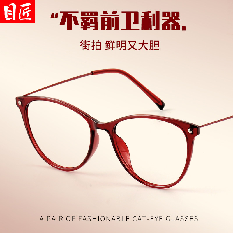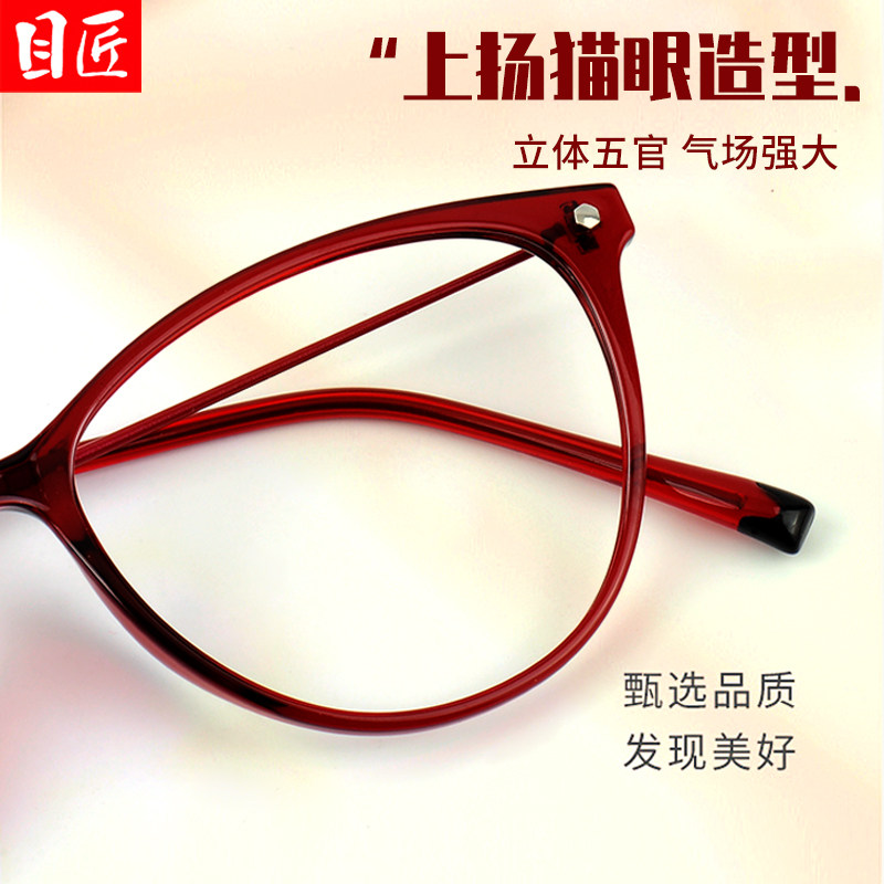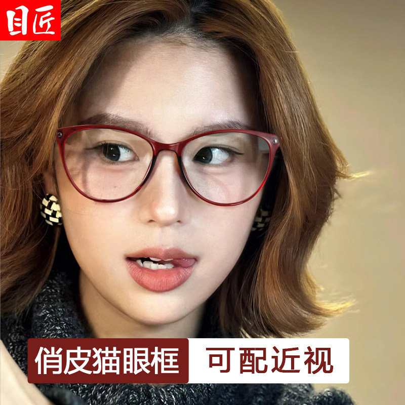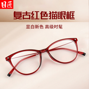 超轻波尔多红色猫眼近视眼镜框架女可配度数复古红框边框素颜镜架