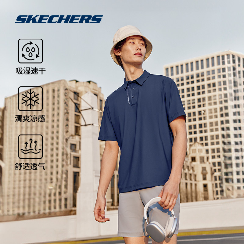 衫 斯凯奇POLO衫 针织短袖 男士 吸湿速干宽松运动上衣舒适百搭 秋季