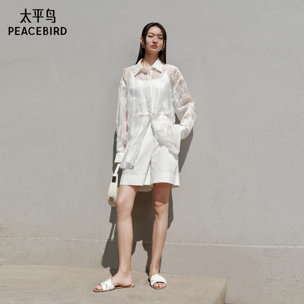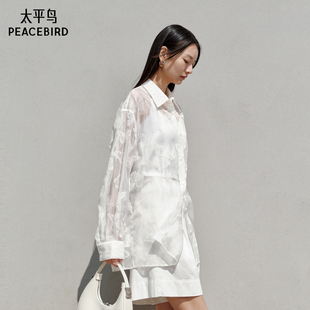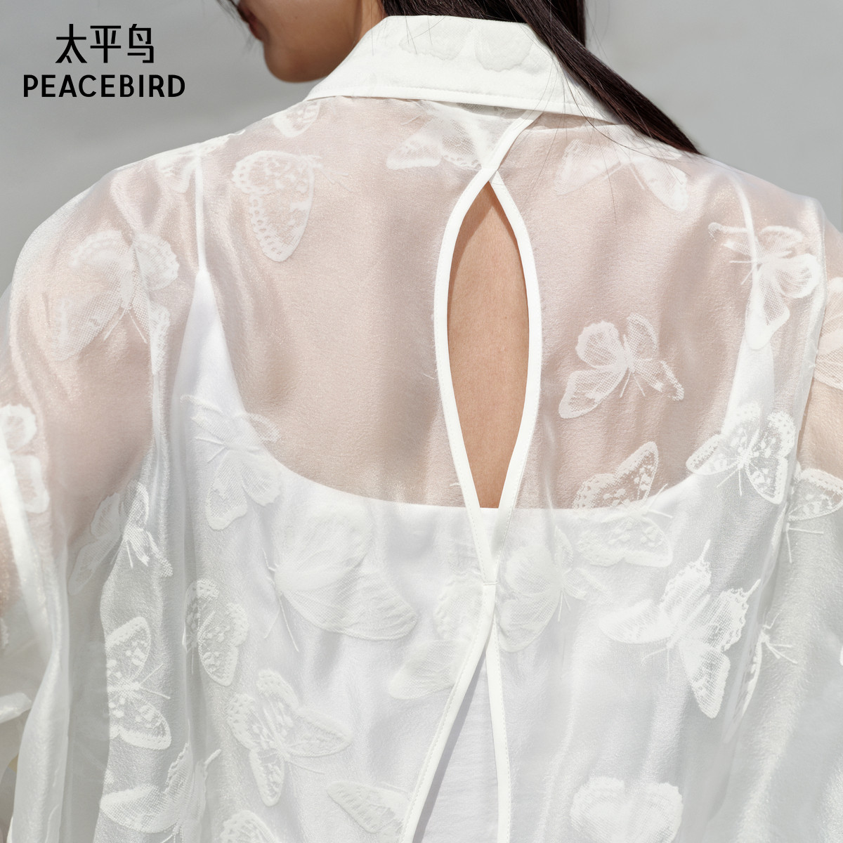 新款 25夏季 背后镂空国风精致衬衣 衬衫 太平鸟轻薄蝴蝶植绒翻领长袖