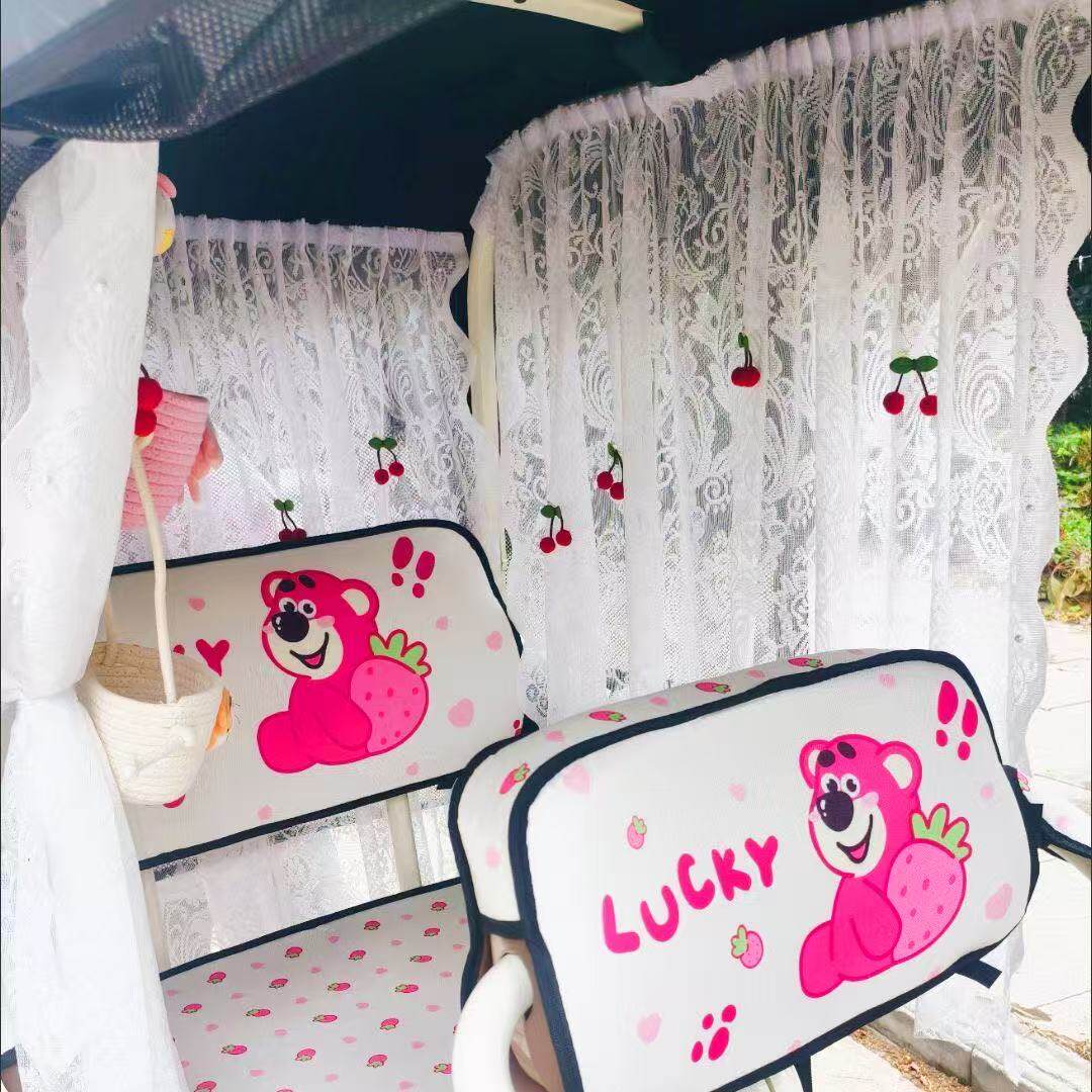 雅迪爱玛金鹏su7三轮车蕾丝自粘帘魔术贴款 防晒纱帘短帘遮光帘