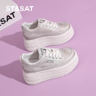 女士松糕超火小白鞋 星期六厚底板鞋 小个子增高运动鞋 新款 女春夏季