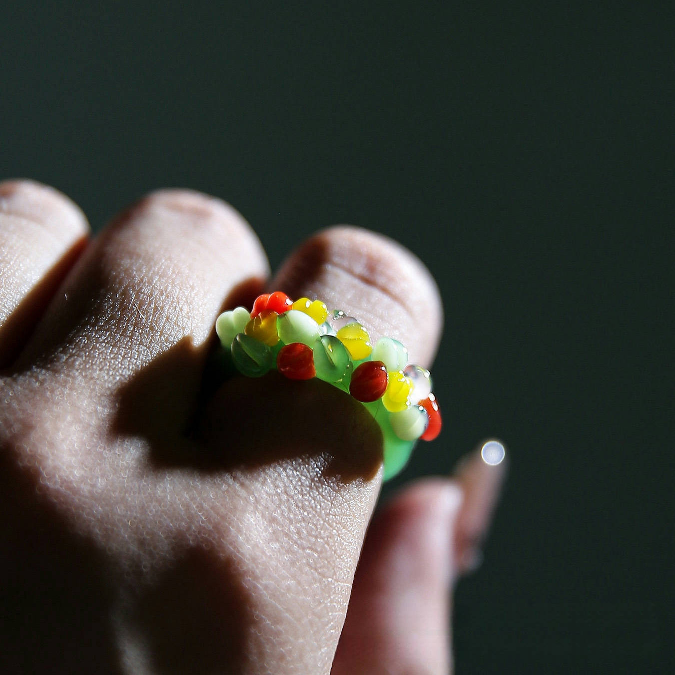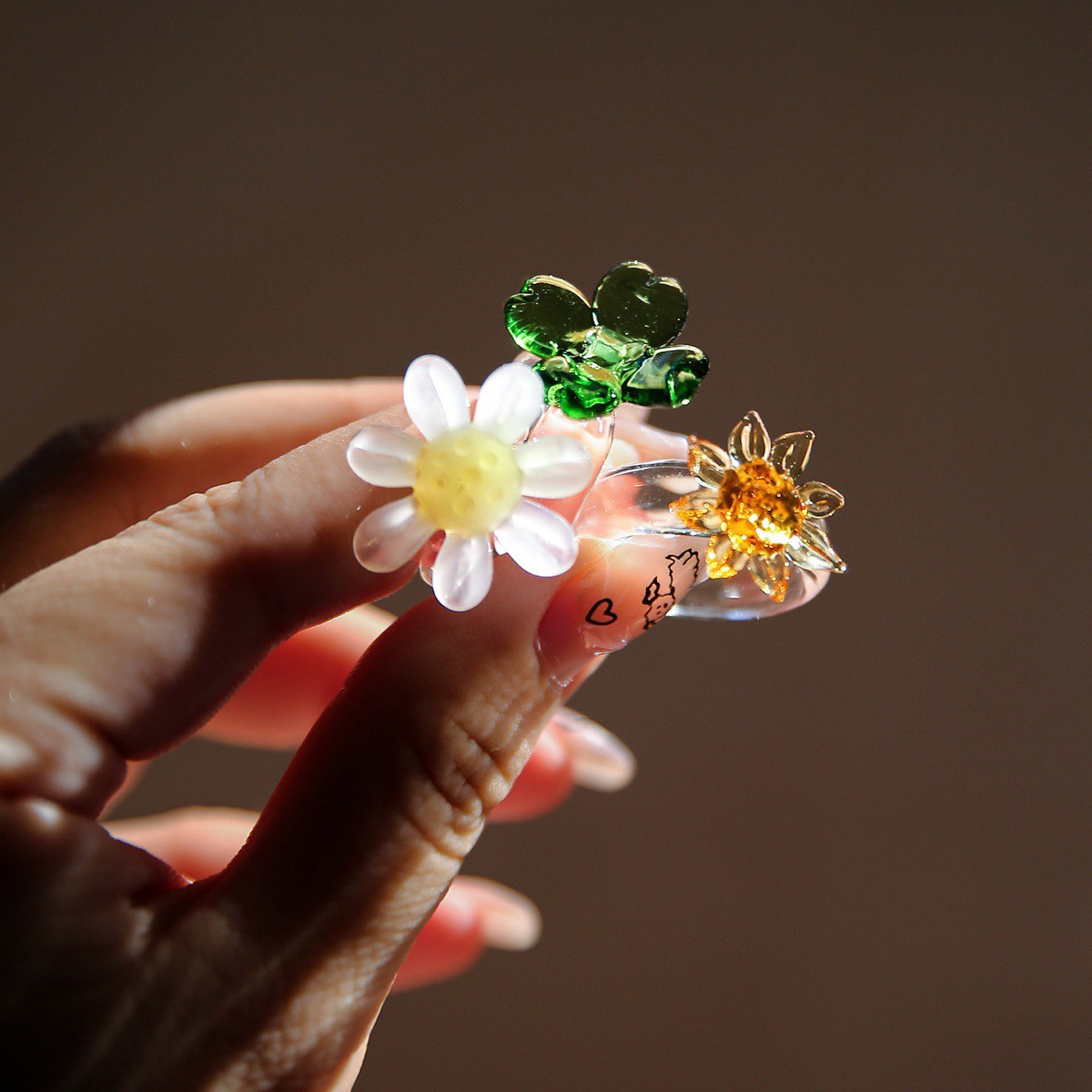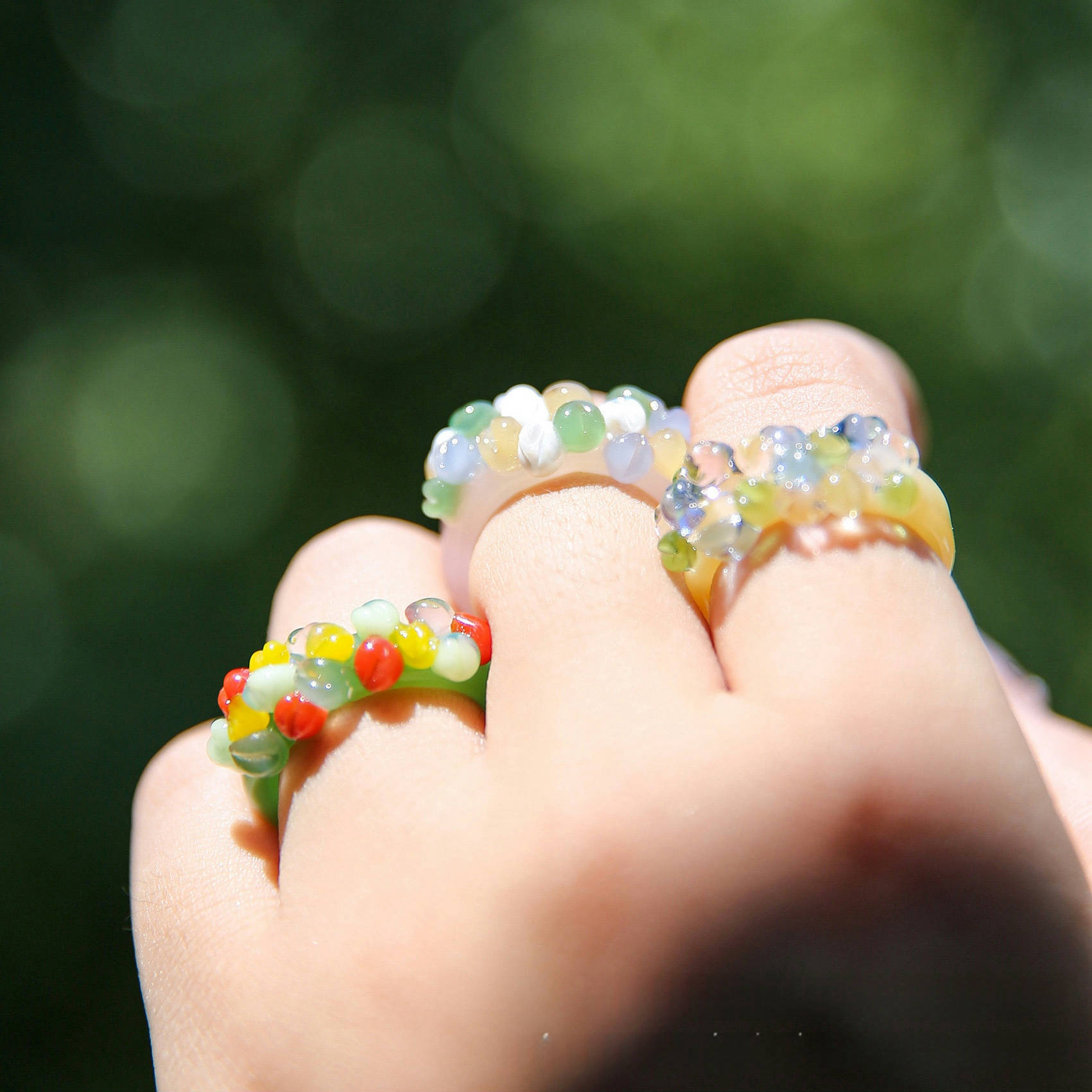 出口日本原创手工琉璃向日葵戒指彩色花朵碎钻玉石戒圈清新甜美