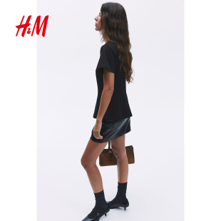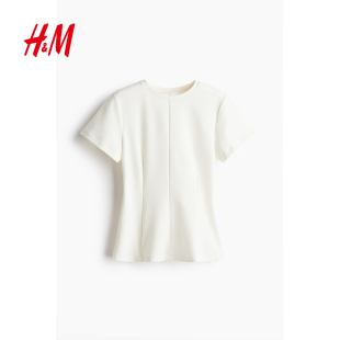 汗布修身 圆领短袖 收腰红色上衣1277321 T恤春季 HM女装