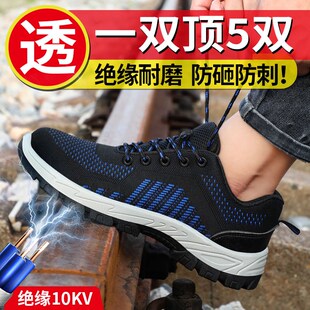 男鞋 透气防静电耐磨工作鞋 男防臭轻便带钢板防砸防刺穿夏季 劳保鞋