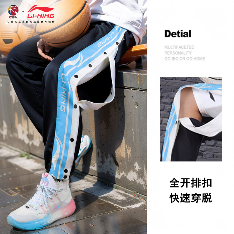 篮球排扣裤 休闲宽松全开秒脱CBA美式 女健身 男2025新款 李宁运动裤