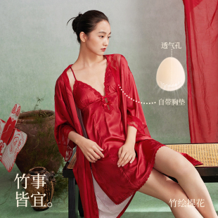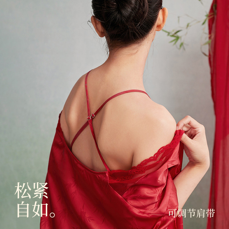 春秋季 睡衣女款 冰丝家居服结婚新婚红色吊带睡袍 巨柔软 安之伴