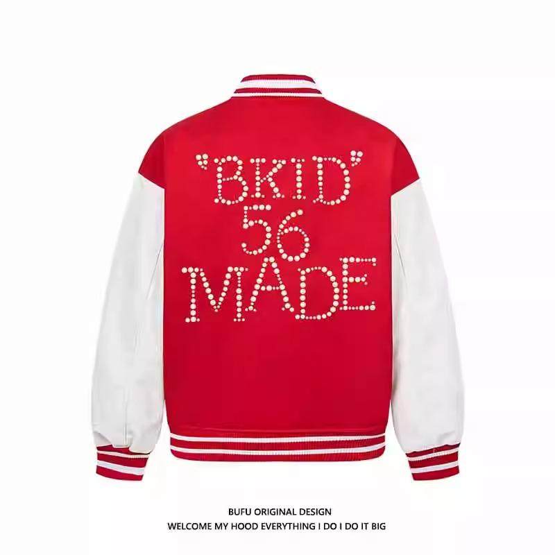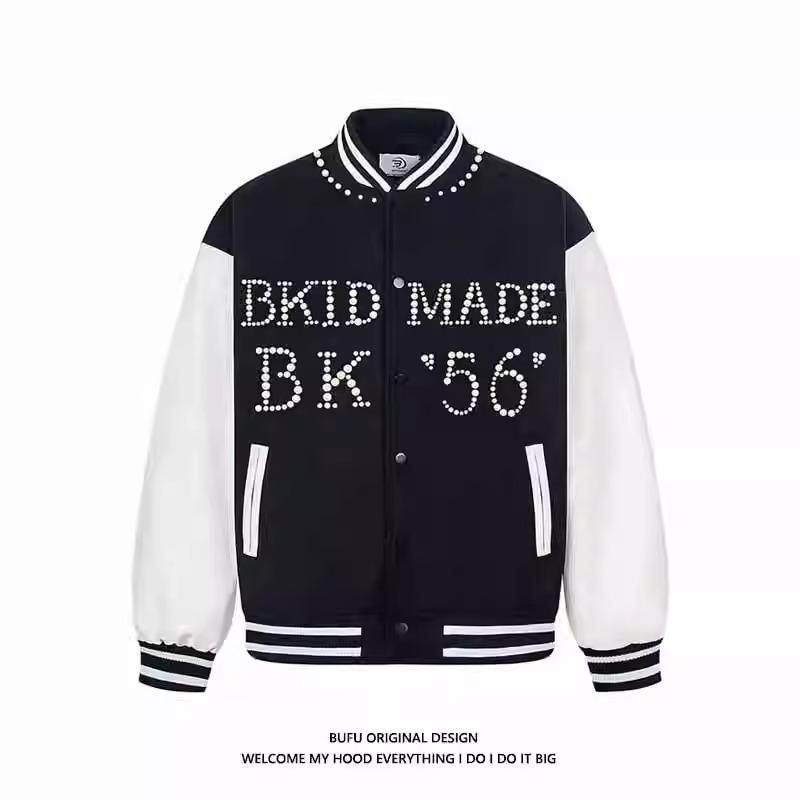 亿万少年bufu美式 宽松夹克上衣 潮牌钉珠棒球服毛呢外套男女春秋季
