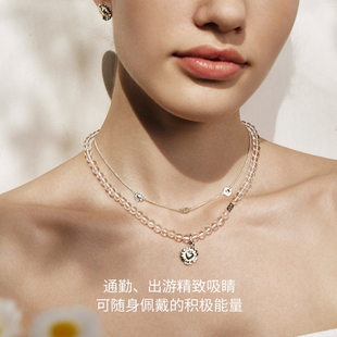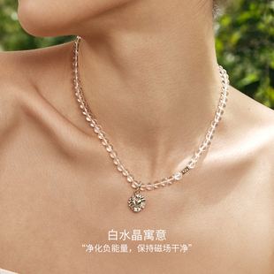 KKLUE锆石吊坠天然白水晶串珠项链百搭花朵项链珠宝 新年礼物
