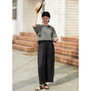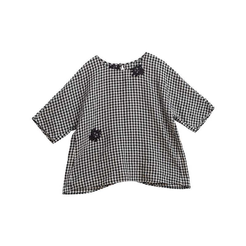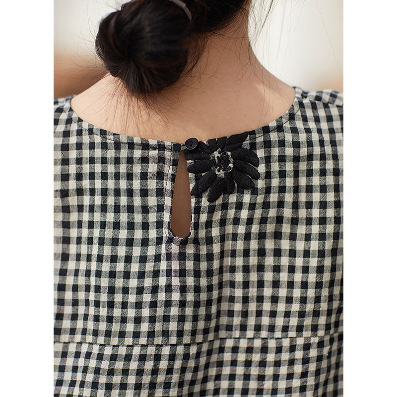 21支亚麻黑白格子绣花宽松小衫 忘城N729座 夏新款 T恤 黑白光景