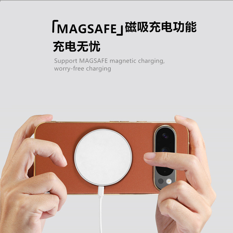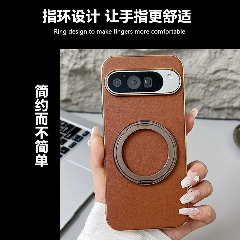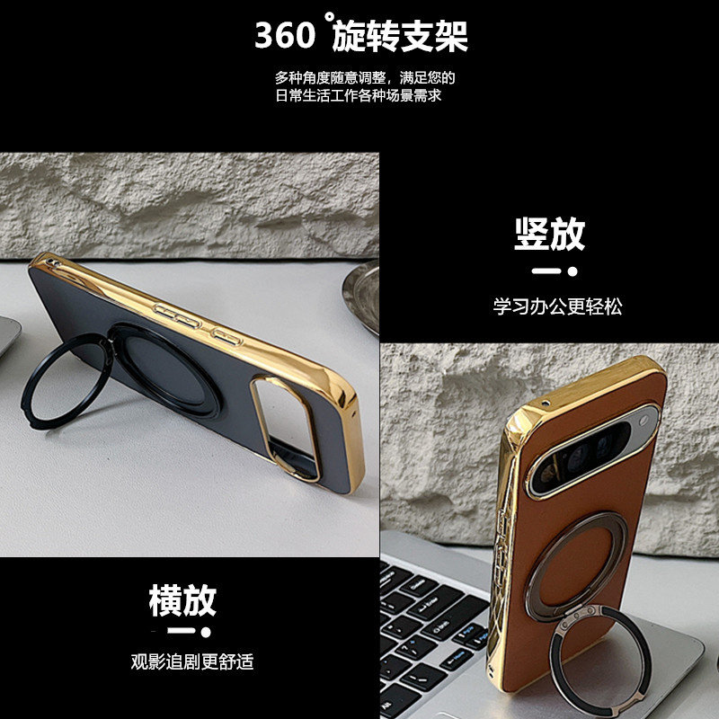 谷歌pixel9XL手机壳电镀皮纹360旋转支架适用PIXEL9pro保护套全包防摔无线磁吸pixel9A高级感简约商务pixel8