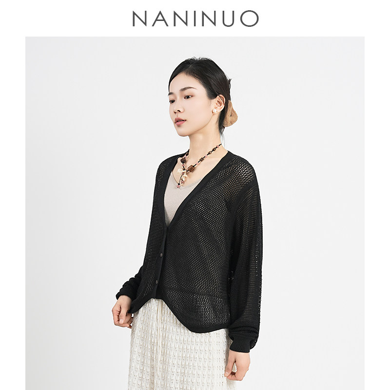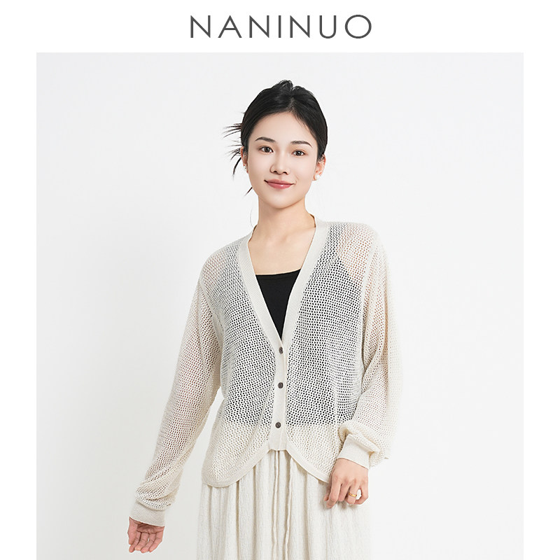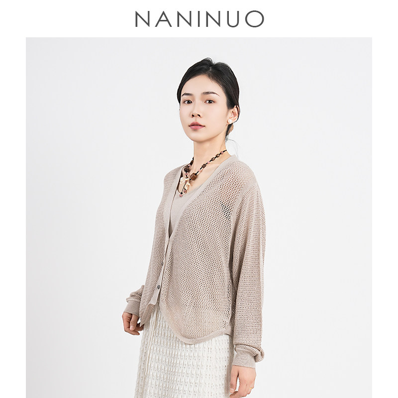 <韵·夏斓 NGWT25140 >丝绒镂空网纹呼吸感防晒罩衫