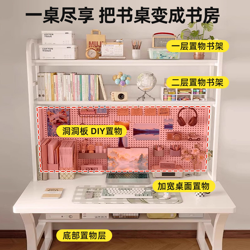 书桌书架一体桌子简易带洞洞板学习桌现代学生卧室家用台式 电脑桌