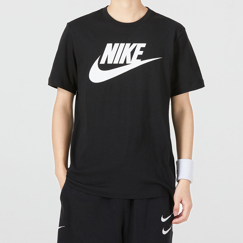 休闲运动跑步套装 耐克正品 两件套春季 短裤 男 男子黑色圆领T恤短袖