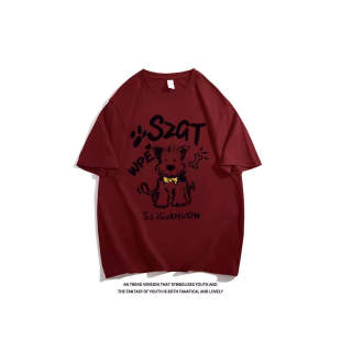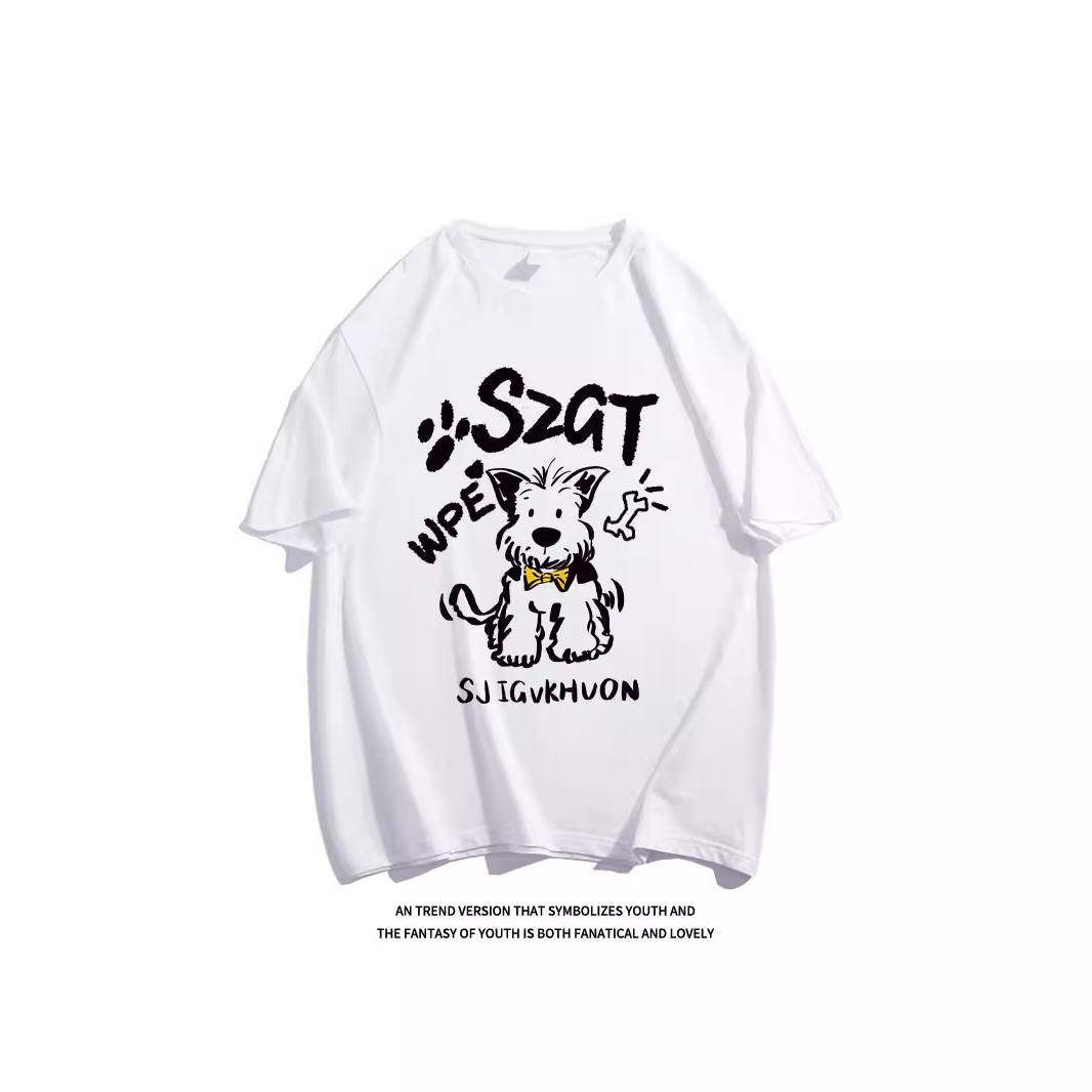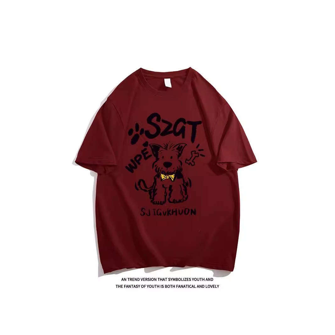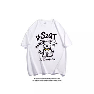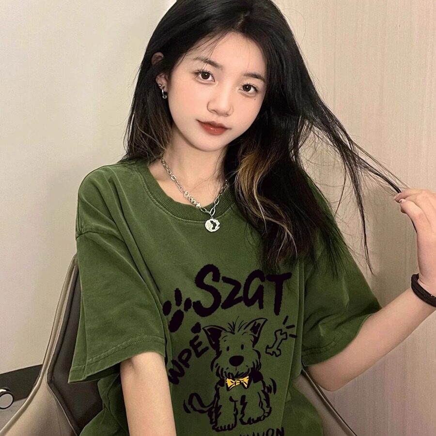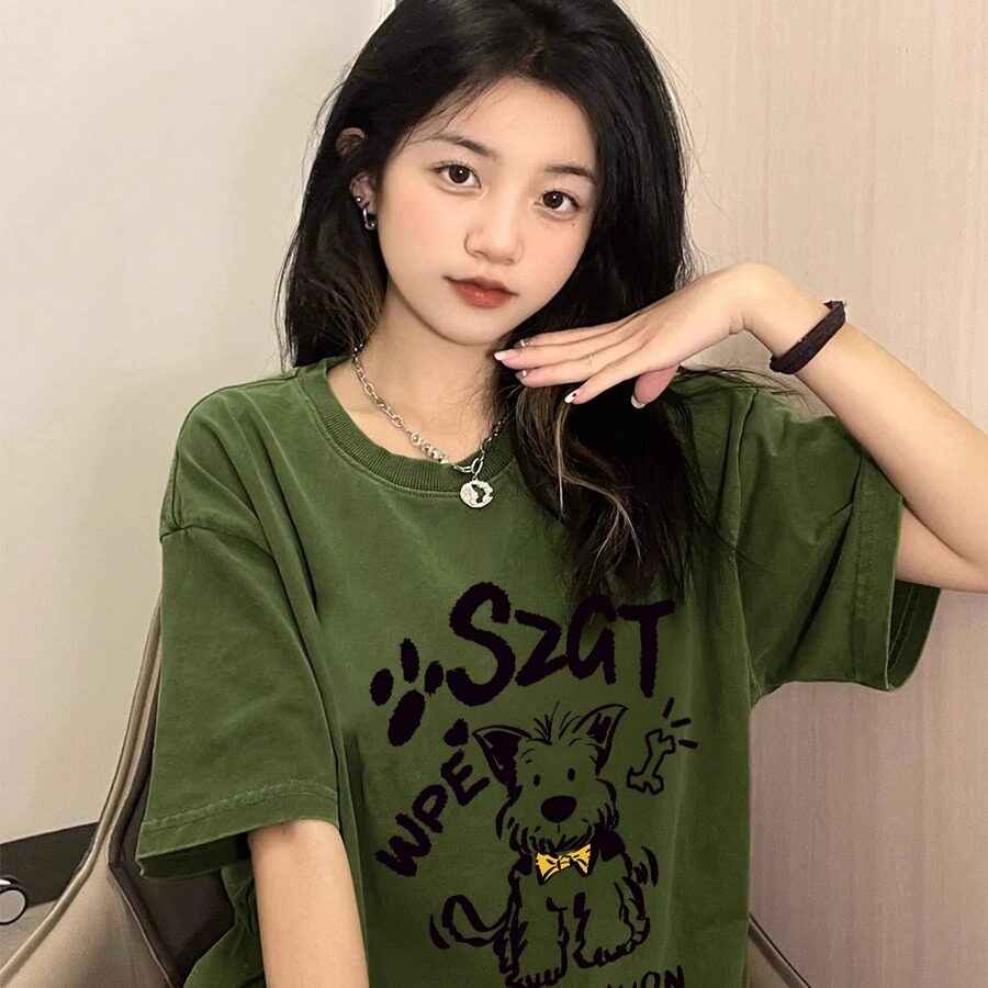 宽松半袖 纯棉复古绿色卡通小狗短袖 美式 夏季 上衣潮 T恤女2025新款