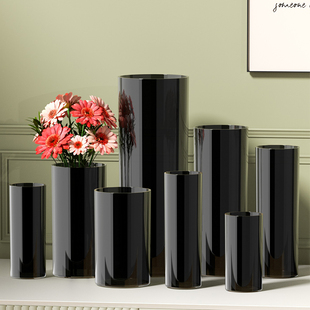 陶瓷插花现代简约水养摆件客厅黑白色干花器北欧式 鲜花餐桌大花瓶