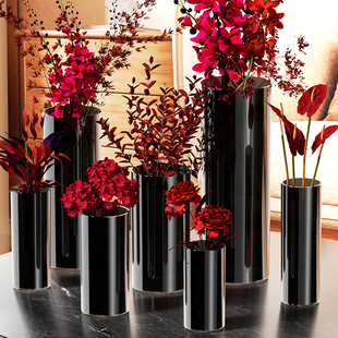轻奢花瓶摆件高级感玻璃水养插花水培鲜花百合郁金香客厅餐桌装 饰