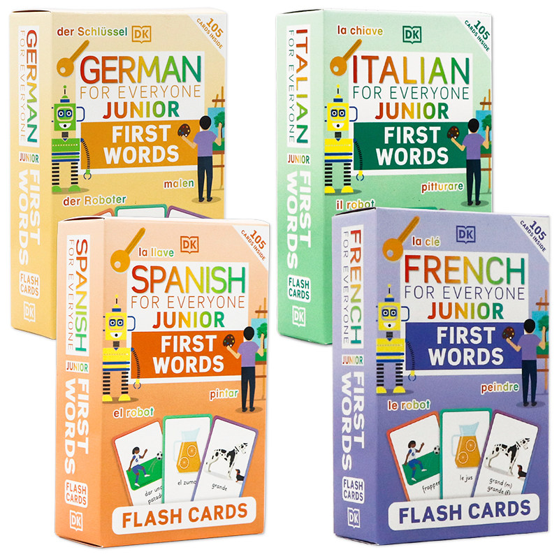 德语 亲子互动学习卡基础词汇配图记忆 First Cards 西班牙语 Flash 英文原版 Words 法语 DK出版 意大利语 人人学100个基础单词4册