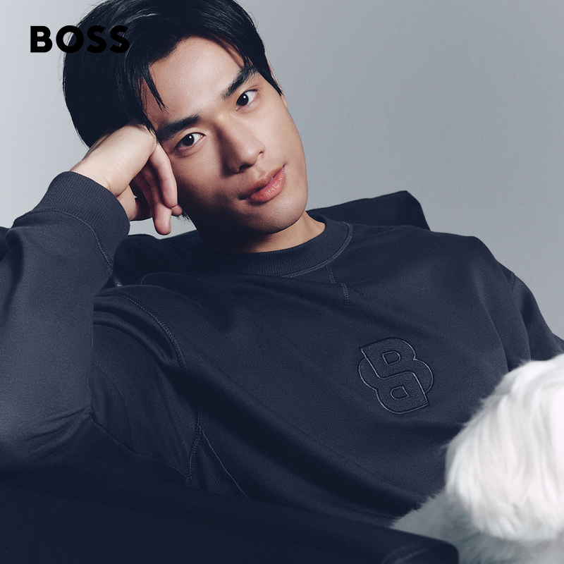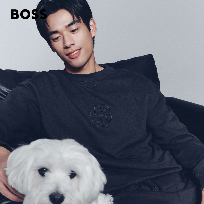 街潮半拉链上衣510129 英文刺绣分割线卫衣 三福2025冬季 男士