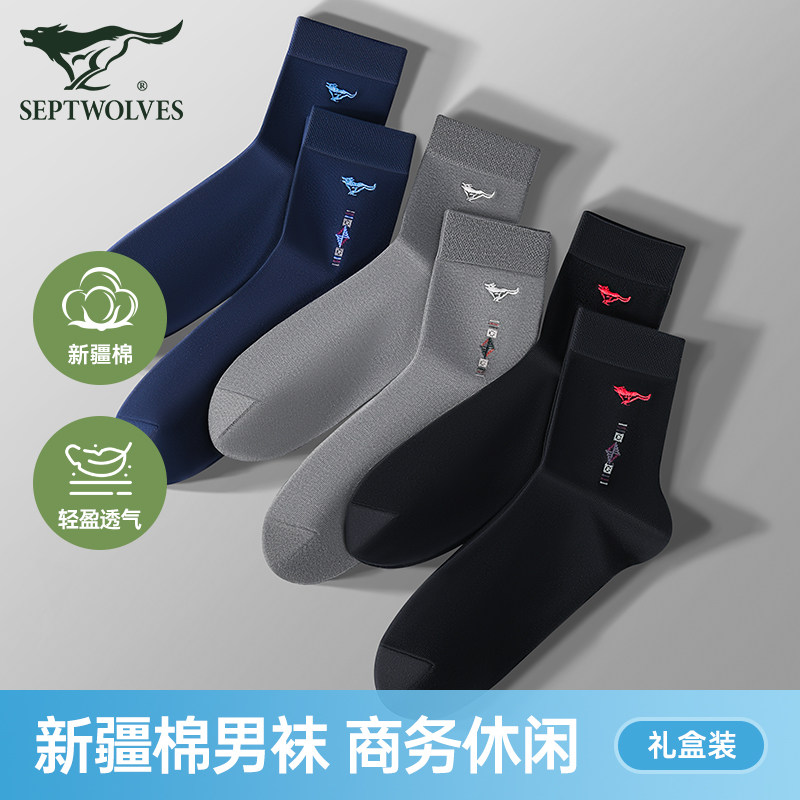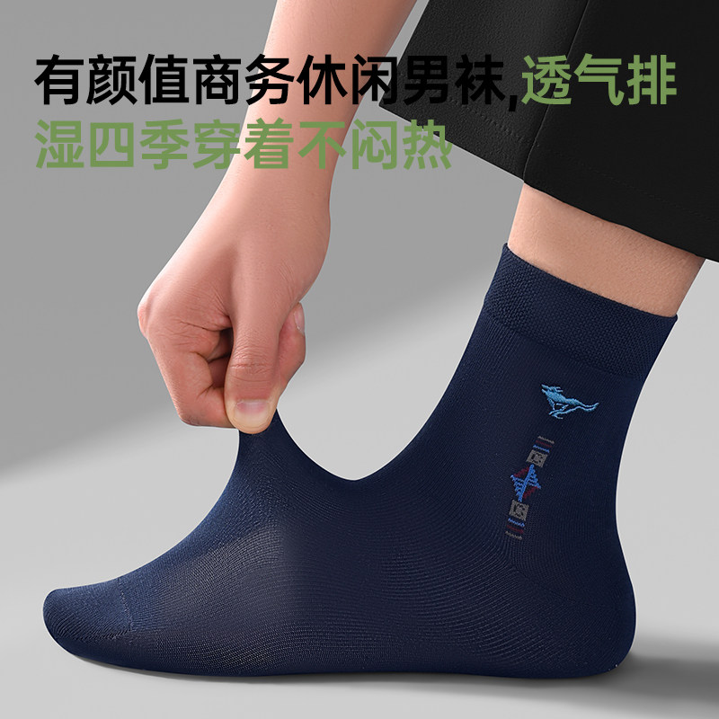 防臭吸汗透气中筒袜男式 薄款 商务黑色长袜 棉袜夏季 七匹狼袜子男士
