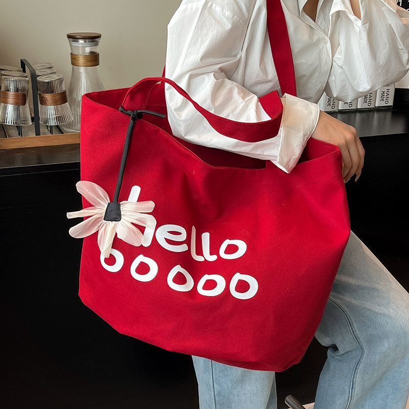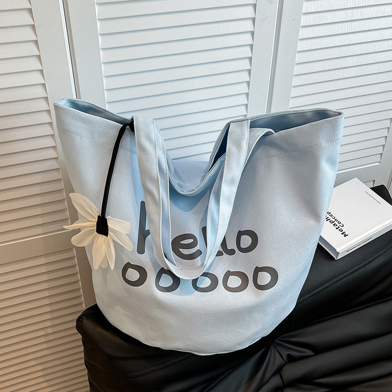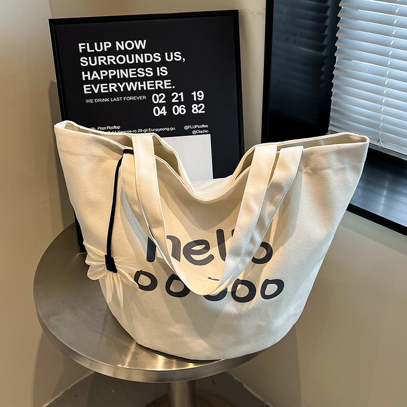 韩系休闲大容量帆布包女2026新款 简约字母学生上课单肩通勤托特包