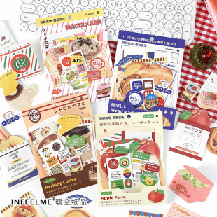 Infeel.Me新鲜卖场贴纸便签素材包古早美食diy手帐本苹果甜点咖啡