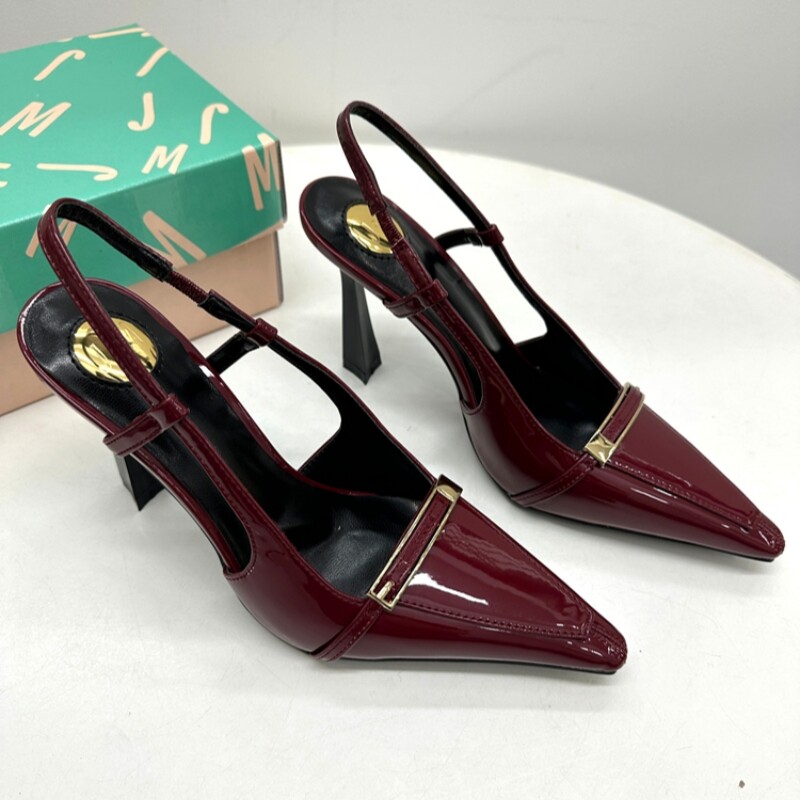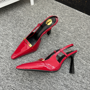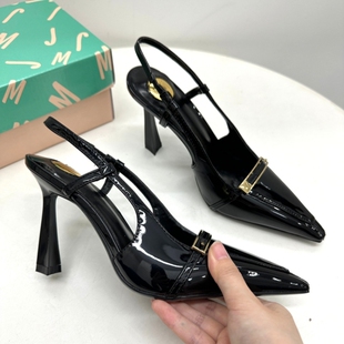 女气质复古尖头漆皮舒适不累脚包头凉鞋 2025外贸大码 一脚蹬高跟鞋