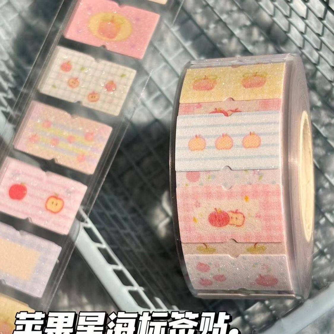 可爱卡通苹果星海闪砂标签贴手账diy素材高颜值装 饰整卷封口贴纸