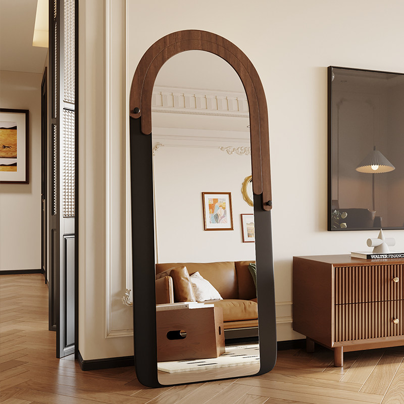 网红穿衣镜家用卧室女生轻奢落地试衣镜子大波浪ins风异形全身镜